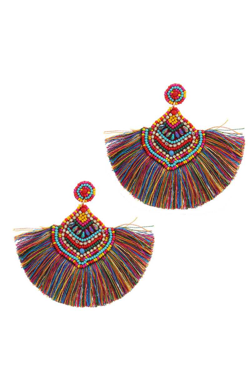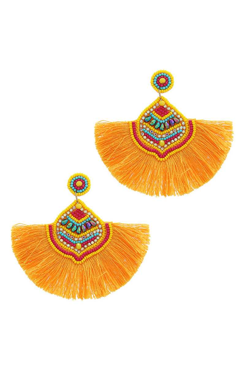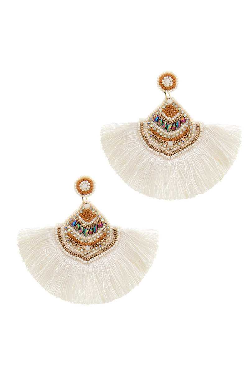 BOUCLES D’OREILLES ÉLÉGANTES À GLANDS EN ÉVENTAIL MULTI-PERLES