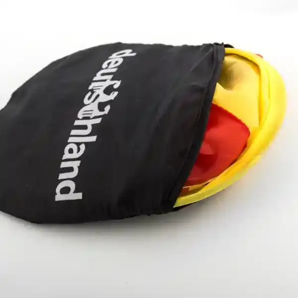 Affichez fièrement les couleurs de votre équipe avec le chapeau pliable Drapeau Allemand ! Idéal pour encourager l’équipe allemande dans toutes sortes d’événements sportifs. Fabriqué en tissu translucide. Il comprend un sac pour le garder. Environ. dimensions : plié : 14 x 16 x 1,5 cm – déplié : 37 x 12 x 37 cm.