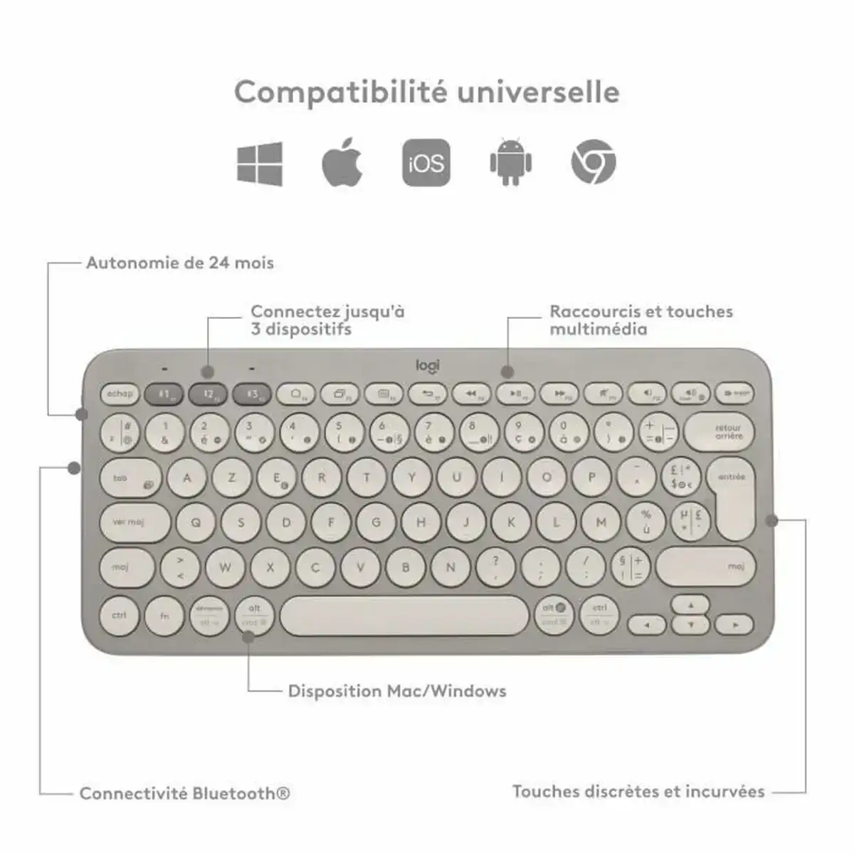Retournez au bureau sans rien oublier ! Achetez Clavier Logitech K380 Gris Français AZERTY et faites envie à vos collègues!