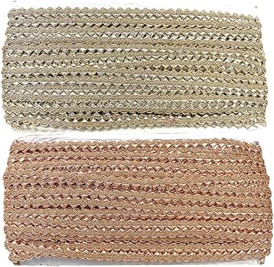 Ensemble de rouleaux d’embellissement en dentelle samosa gota patti pour chemisiers, saris, kurtis et robes couleur argent et or largeur 1,1 cm 36 mètres (2 rouleaux).