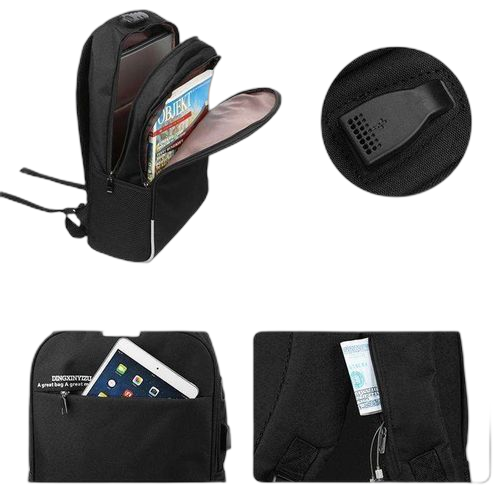 • Port USB Intégré : Restez connecté grâce au port de chargement USB intégré, vous permettant de charger vos appareils sans avoir à ouvrir votre sac.