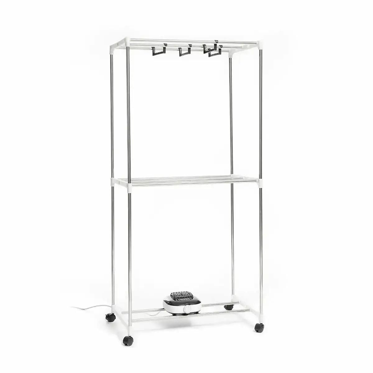 Séchoir électrique portatif avec plusieurs hauteurs parfait pour sécher les vêtements plus rapidement et plus facilement, ce qui permet d’économiser du temps et de l’effort. Les vêtements sont séchés étirés et moins froissés, de sorte qu’il est plus facile de repasser ensuite. Ce séchoir est très facile à utiliser et à transporter n’importe où, étant donné qu’il dispose de 4 roues de transport à rotation 360º et d’un blocage de sécurité pour une fixation ferme. Il permet de suspendre les vêtements en plusieurs positions (de face ou de côté), puisqu’il comprend 6 supports supplémentaires pour accrocher des cintres, en plus des barres de structure elles-mêmes. Il dispose d’une grande capacité et est adapté à tout type de vêtements de toutes tailles. Il atteint une température de 70 °C qui stérilise les vêtements et élimine les odeurs. La housse extérieure est amovible et lavable à la main, elle se ferme avec une fermeture éclair et protège les vêtements de la poussière et de la saleté environnante. Le chauffage d’air de grande puissance est silencieux et le thermostat est sécurisé pour éviter toute surchauffe. Grâce à la minuterie, le temps de séchage peut être programmé pour s’éteindre automatiquement. Monté et démonté facilement, il suffit de suivre les instructions de montage incluses.