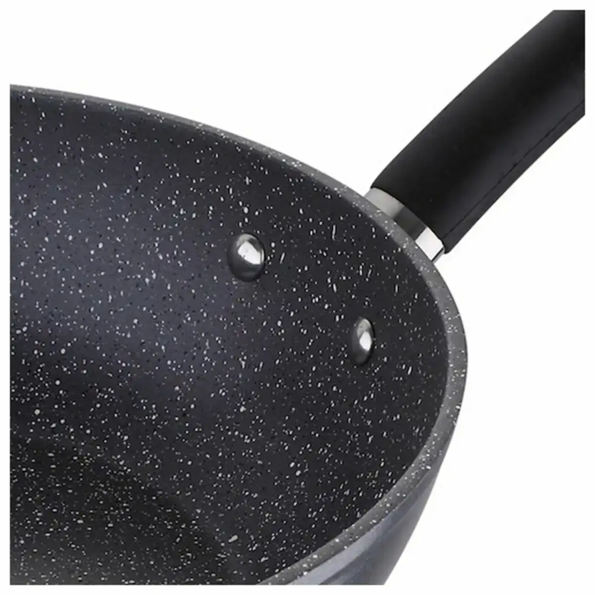 Fabriqué en aluminium forgé de haute qualité, le wok de la collection MasterPRO Home Edition a un intérieur conçu pour que la nourriture et les accessoires de cuisine n’endommagent pas le produit. Doté d’un antiadhésif Marble +, il incorpore de petites mouchetures noires et douces, offrant un aspect délicat. Grâce à sa base à induction complète, il est possible de cuisiner tout en économisant du temps et de l’énergie. En même temps, il est compatible avec toutes les cuisinières du marché, y compris les cuisinières à induction. Le produit a un manche en acier inoxydable de haute qualité qui offre une prise en main confortable et sûre du produit et est protégée par un caoutchouc de silicone noir.
